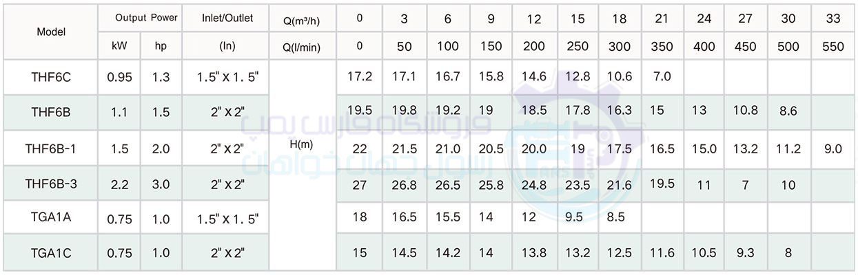 ویژگیها و مشخصات فنی الکتروپمپ دو اسب دو اینچ THF6B-1 تایفو TAIFU: