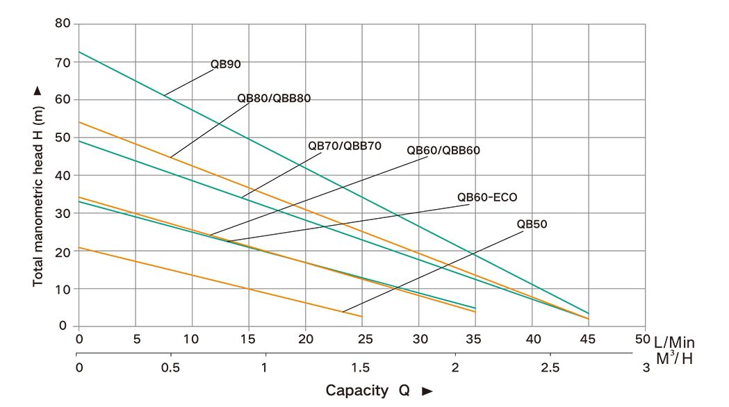 نمودار پمپ آب نیم اسب محیطی QB60E تایفو TAIFU: